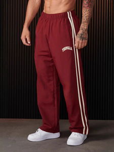 YOUNGLA 越境ホットセールメンズスポーツパンツダブルストライプスプライシングプリントパンツジムスポーツストレートパンツ