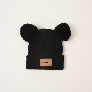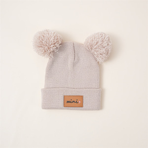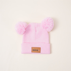秋冬子供用ニット帽、男の子ベビーウール帽子、かわいいファーボール防寒暖かいレター、女の子ベビープルオーバー帽子