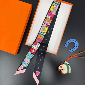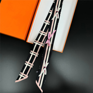 2025小香巴黎山茶花加长绑包手柄丝巾小领巾女束发带头巾飘带围巾