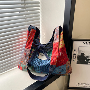 2025 春夏エスニックスタイルデニムトレンド新作ショルダーバッグ大容量クロスボディバッグ巾着トートバッグファッション