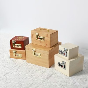 跨境新品木质密码盒翻盖实木密码锁木盒子方形桌面储物盒厂家批发