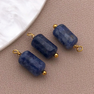 T1334-ステンレス青白石天然石ペンダント 6X10mm-0.9g