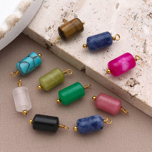 クリスタルストーン円筒ビーズペンダントステンレス鋼小さなペンダント DIY 手作りイヤリングネックレスブレスレットジュエリーアクセサリー