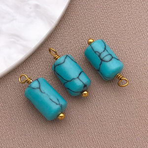 T1336-ステンレススチールターコイズ天然石ペンダント6X10mm-0.9g
