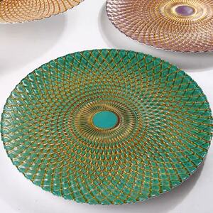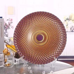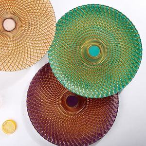 軽い高級ガラスプレート、セキセイ模様、東南アジアの金緑のフルーツプレート、洋食プレート、装飾プレート、宴会パイナップルプレート