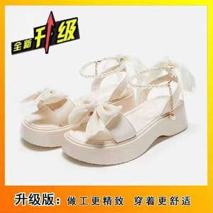韓国プリンセスホリデーサンダル女性の夏の 2023 新しい弓厚底妖精スタイルスカートローマ靴