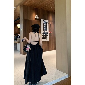女性のためのリゾートスタイルのバックレスホルターネックドレス夏の新しいフレンチデザインニッチカバー肉ファッション年齢を減らすロングスカート