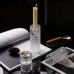 モダンでシンプルな透明なガラスの燭台装飾品ホームモデルルームリビングルームレストランロマンチックなキャンドルライトディナーテーブル装飾