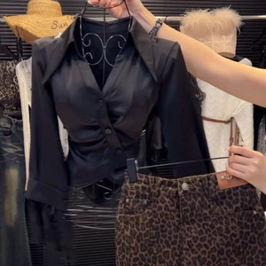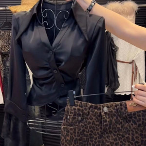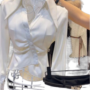 气质蕾丝拼接翻领长袖衬衫女2025秋季新款高级感收腰显瘦别致衬衣