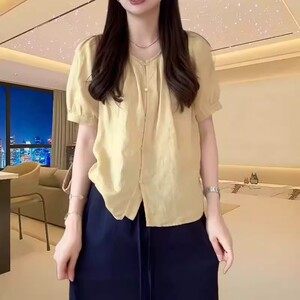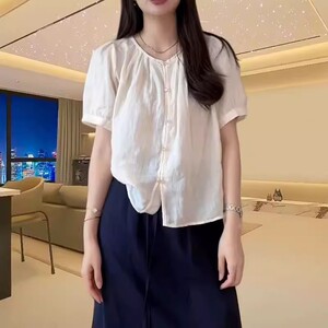 ファットMMプラスサイズの女性の無地のお腹カバー痩身シャツトップ夏の新しいファッションラウンドネックルーズ半袖トレンディ