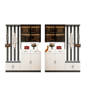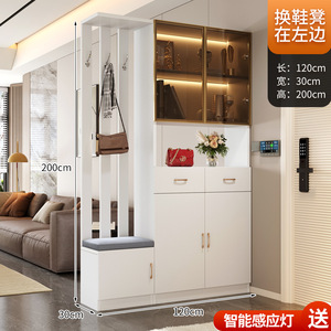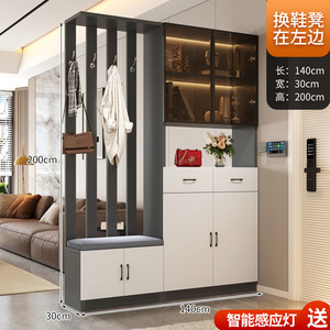 軽量高級無垢材玄関キャビネットと靴キャビネット一体型シンプルな多機能リビングルーム玄関パーティションキャビネットワインキャビネット靴スツール収納キャビネット