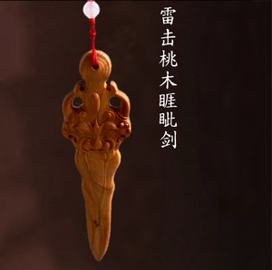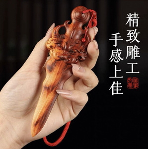 天然雷撃木製マホガニー剣ペンダント、子供と赤ちゃんの寝室用携帯雷撃剣ペンダント