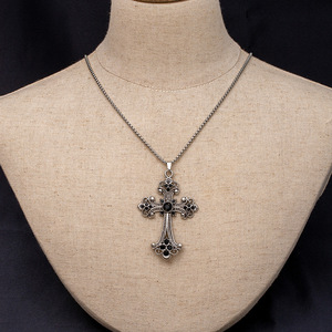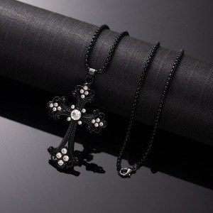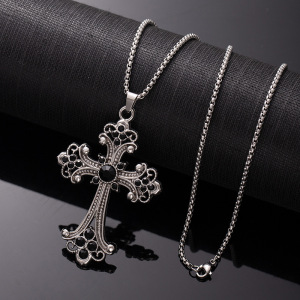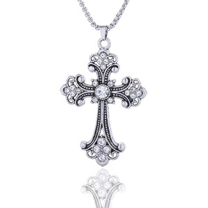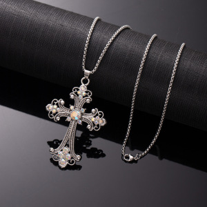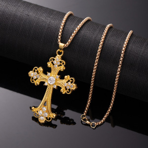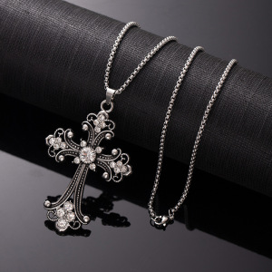 ヨーロッパとアメリカのクロスボーダージュエリー中空フラワーネックレスカラーダイヤモンドクロスペンダントネックレスシンプルレトロ多用途セーターチェーン