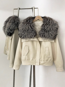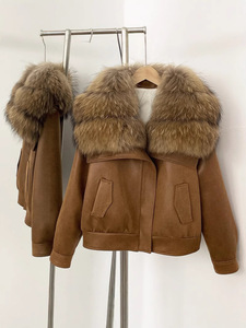 冬の新スタイルスエードフォックスファー襟毛皮コートスエードダウンライナーショートバイカージャケット