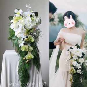 フォレストスタイル旅行写真ガーデンスタイル結婚式の写真撮影の小道具美的写真結婚式の滝水滴シミュレーション花嫁の花束