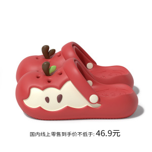 夏のアップル下駄女性用 2025 家庭用および屋外用滑り止め通気性向上厚底ストラップ付きファッショナブルなサンダル