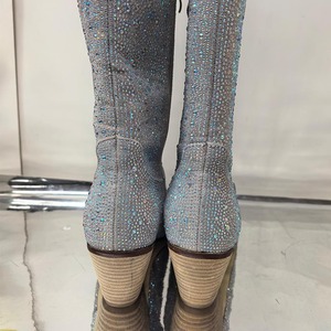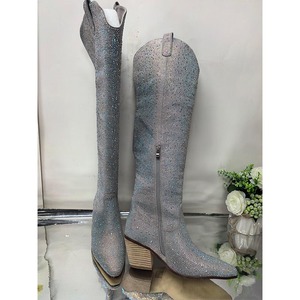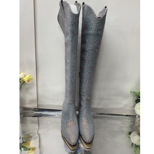 2025 外国貿易ヨーロッパステーションソリッドカラーラインストーンオーバーニーウェッジブーツスプリットストリート撮影キャットウォーク大きいサイズステージブーツオーバーニーブーツ