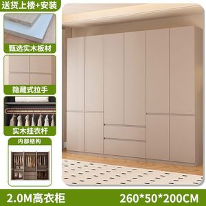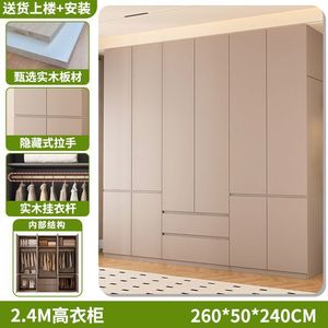 2.6*2.4m ワードローブ + 上部キャビネット (6 ドア) 厚みのある無垢材
