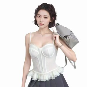 レースステッチタイトフィッシュボーンキャミソール夏の新しいスタイルフレンチスタイルホットガール純粋な欲望トップ胸パッド付きウエストを細くする