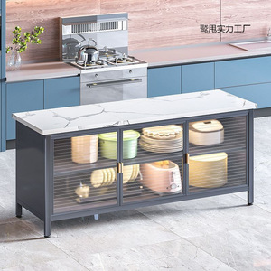加厚岩板柜厨房橱柜岩板桌面三层碗碟餐边柜多层厨房置物架收纳柜