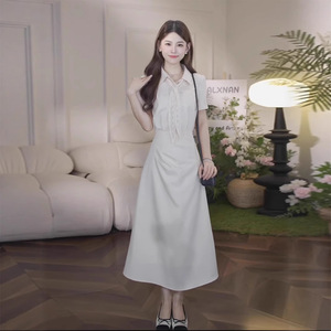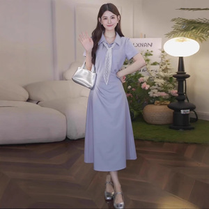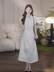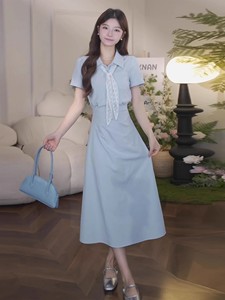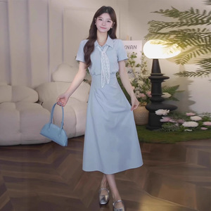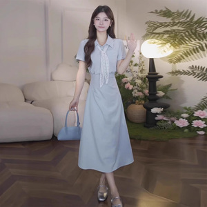 2025 新しいフレンチスクエアネック半袖ドレス女性の夏のデザインニッチ気質ウエスト痩身ロングスカート