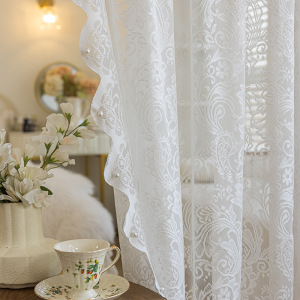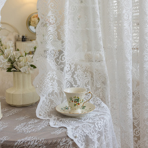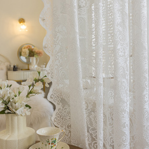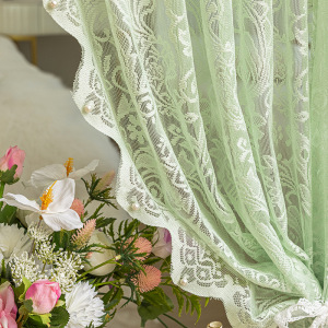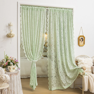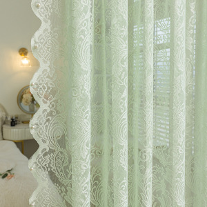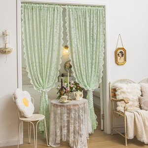 グリーンレースウィンドウスクリーンパンチフリーフレンチガーゼカーテンベルクロ装飾出窓寝室バルコニーカーテン遮光取り付け