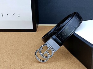 ダブルGGメンズ本革ベルト、高級二層純牛革、若者向け多用途カジュアルパンツベルト、若者向けトレンディベルト