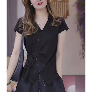 夏の新しい気質レトロ多用途ルーズ2025痩身巾着年齢軽減半袖