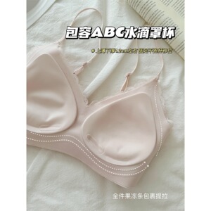 女性用快適レースシームレス下着、薄型小胸プッシュアップゼリーストリップビューティーベスト風細いショルダーストラップブラジャー
