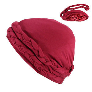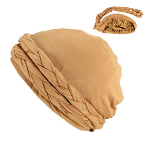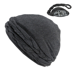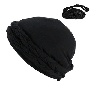 編み込みプレタイドターバンハット、肌に優しいモーダルサテンプルオーバーハット、ヨーロッパとアメリカの男性と女性のためのツイストテールハット