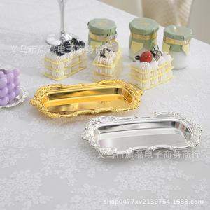中东轻奢金属托盘金边银色零食水果点心蛋糕长方形收纳餐盘展示盘