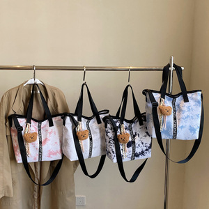 女性用卸売タイダイトートバッグ、新しいニッチデザイン、ハイエンドハンドバッグ、大容量通勤多目的クロスボディバッグ