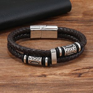 国境を越えた新製品ヨーロッパとアメリカのレトロなファッションスタイル北欧バイキング亜鉛合金二層レザー手織りメンズブレスレット