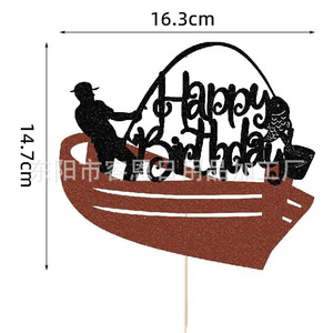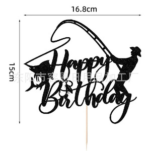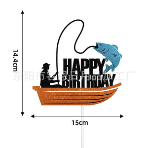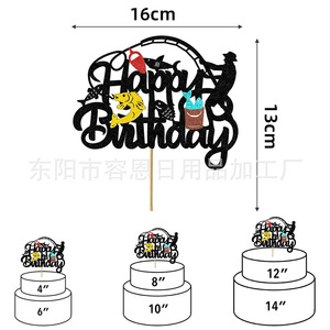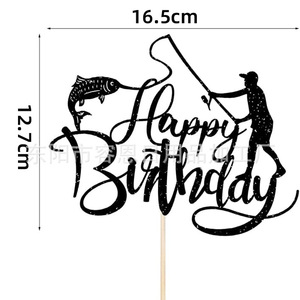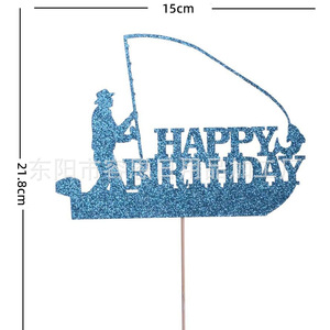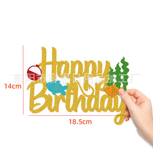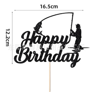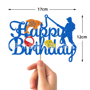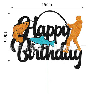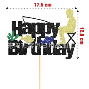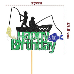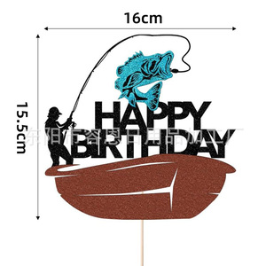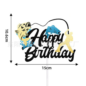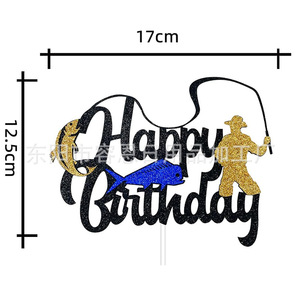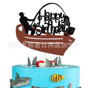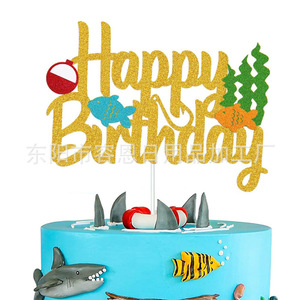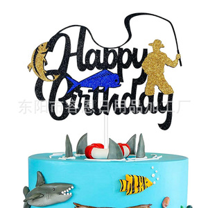 クロスボーダークリエイティブフィッシングシリーズハッピーバースデーケーキインサートパーティーテーマケーキインサート装飾用品インサート