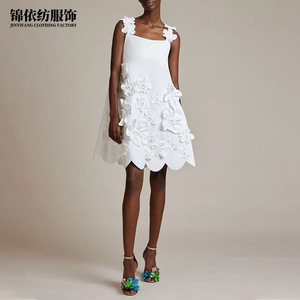 クロスボーダーヨーロッパとアメリカのファッショナブルな立体フラワーサスペンダードレス夏の新しいエレガントなスタイルの甘いショートスカート外国貿易