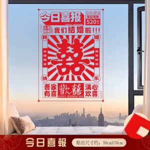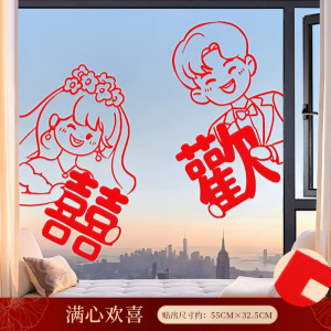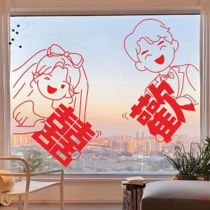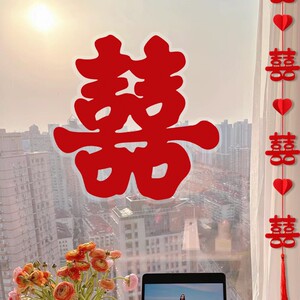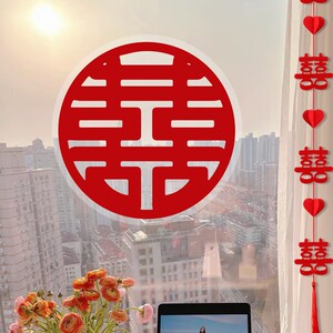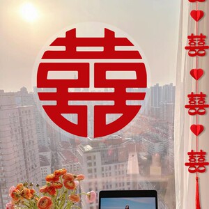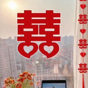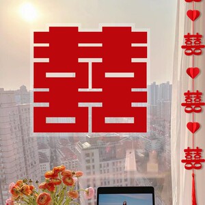 卸売結婚式の部屋の装飾特別なハッピーワードステッカーガラス窓静電ステッカー囍文字窓ステッカーリビングルーム結婚式のハッピーワード