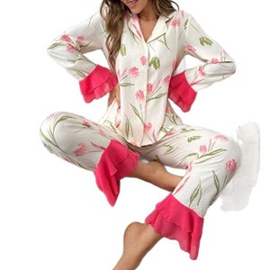 春の新スタイルラペルカーディガンパジャマレディーススーツハイエンドヨーロッパとアメリカンスタイルのスプライシングレース甘いカラーホーム服