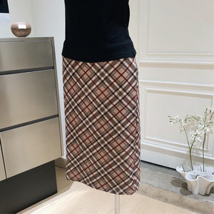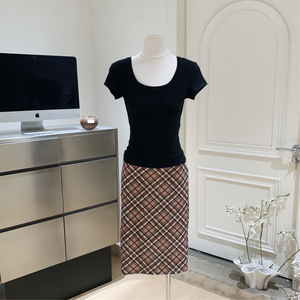 おしゃれな知的ミウ風夏レトロチェック柄ヒップカバーデザインAラインスカート