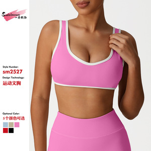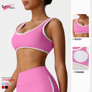 Amazon ヨガウェア スポーツブラ ヨーロッパとアメリカのコントラストカラー プッシュアップブラ フィットネス スポーツ 耐衝撃性 高弾性トップベスト