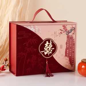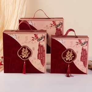 新しい中国風のポータブルウェディングキャンディボックス、中国風のタッセル付きブライズメイドギフトボックス、竹の葉のお祝い包装箱、空箱