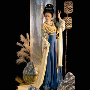オリジナルドーパミンシルク伝統的な漢服女性の春、夏、秋唐ラウンドネックベアネックウエスト丈8破れロングスカート