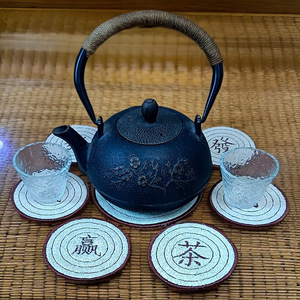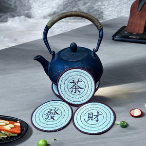 ポットマット、滑り止めティーマット、ソーサー、たわし、断熱、衝突防止、天然茶マット、コースター、ヘチマ、吸水性刺繍