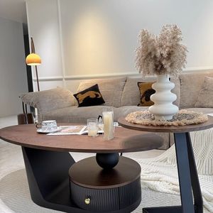 中世スタイルの無垢材コーヒーテーブル、わびさびスタイル、モダンでシンプルなホームリビングルーム、小さなアパートのデザイナーのハイエンドティーテーブル