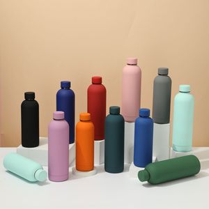 跨境美式磨砂小口瓶简约不锈钢橡胶漆保温杯户外登山便携运动水瓶