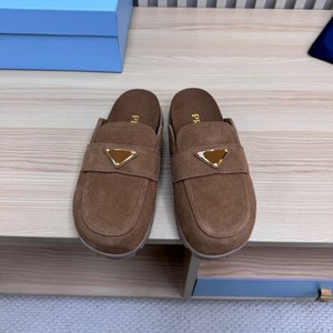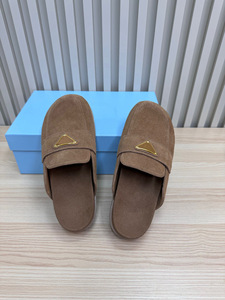 真皮厚底勃肯鞋平底半拖女外穿包头拖鞋P家三角标2025新款穆勒鞋
