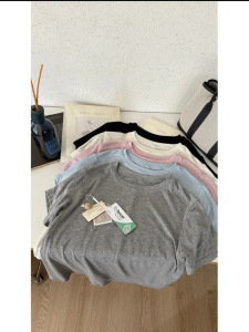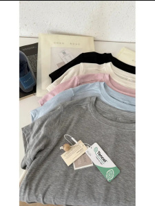 リラックスウールテンセル右肩半袖Tシャツ新しいラウンドネック高弾性多用途快適な女性の夏のTシャツトップ