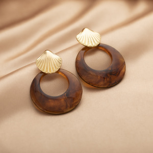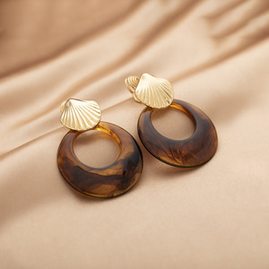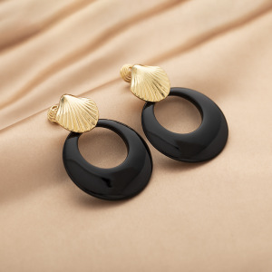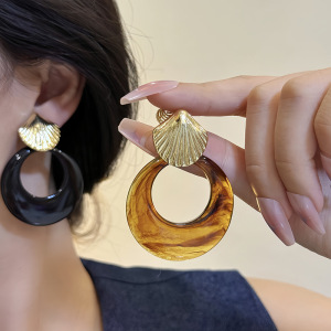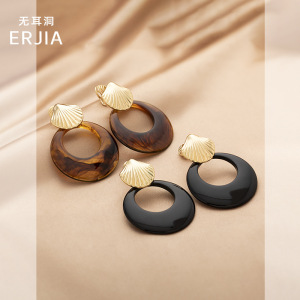 夸张个性贝壳圆圈吊坠耳环港风复古时尚高级感蚊香盘耳夹无耳洞女