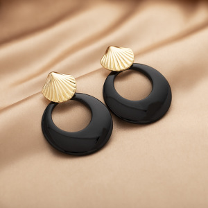 【2744】 贝壳黑圆圈 蚊香盘耳夹