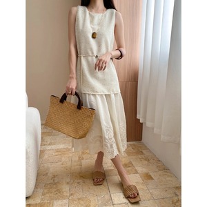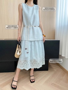 Sinan Moon Slow Galaxy テンセル綿混紡スパンコール刺繍ステッチフェイクツーピースベストドレス SN7664