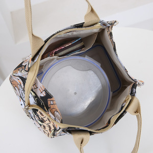 仕事用の西洋風の漫画ファッションキャンバストートバッグ、ランチバッグ、ランチボックスバッグ、通勤用ママバッグ